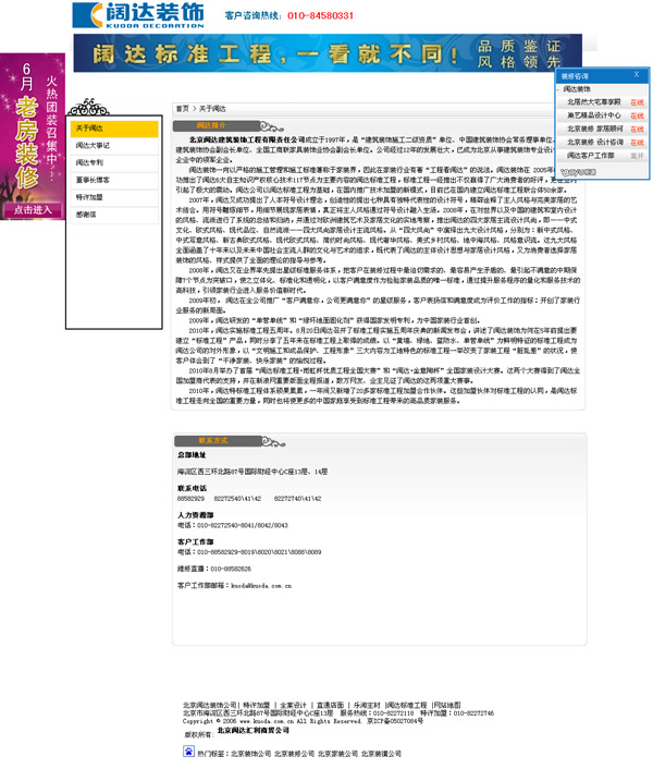 2009年初, 闊達(dá)在全公司推廣“客戶滿足你,公司更滿足你”的星級服務(wù),客戶表彰信和滿足度成為評價事故的指標(biāo);開創(chuàng)了家裝行業(yè)服務(wù)的新局面。